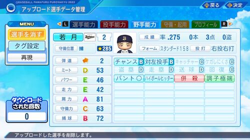 吉田正尚 敦賀気比高→青山学院大→オリックス・バファローズ 【2022年成績(7/11現在)】59試合 打率.310(200-62) 8本 44打点 OPS.903 得点圏打率.429(49-21) 対右.275 対左.387 筋肉 太ももの怪我で全力疾走ができなくなったので、走力は低めにしています。